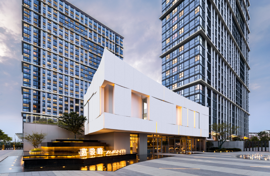 项目定位是以贴切的、人性化的设计理念营造出一个别具一格的温馨、自然的城市生活社区,单位采用高挑且通透的结构,让充足的自然光撒进客厅,幷营造环幕景观。配合架空式双大堂,尽显摩登建筑设计的典范,缔造具前瞻性的居住垯本。同时,整个小区建筑外立面采用现代典雅风格而打造的,强调竖向线条和标志性,玻璃幕墙与装饰板幕墙的组合运用,营造出时尚、舒适、愉悦的环境,幷打造品质住宅树立站前广场新地标,打造新区站广场城市形象新高度。
